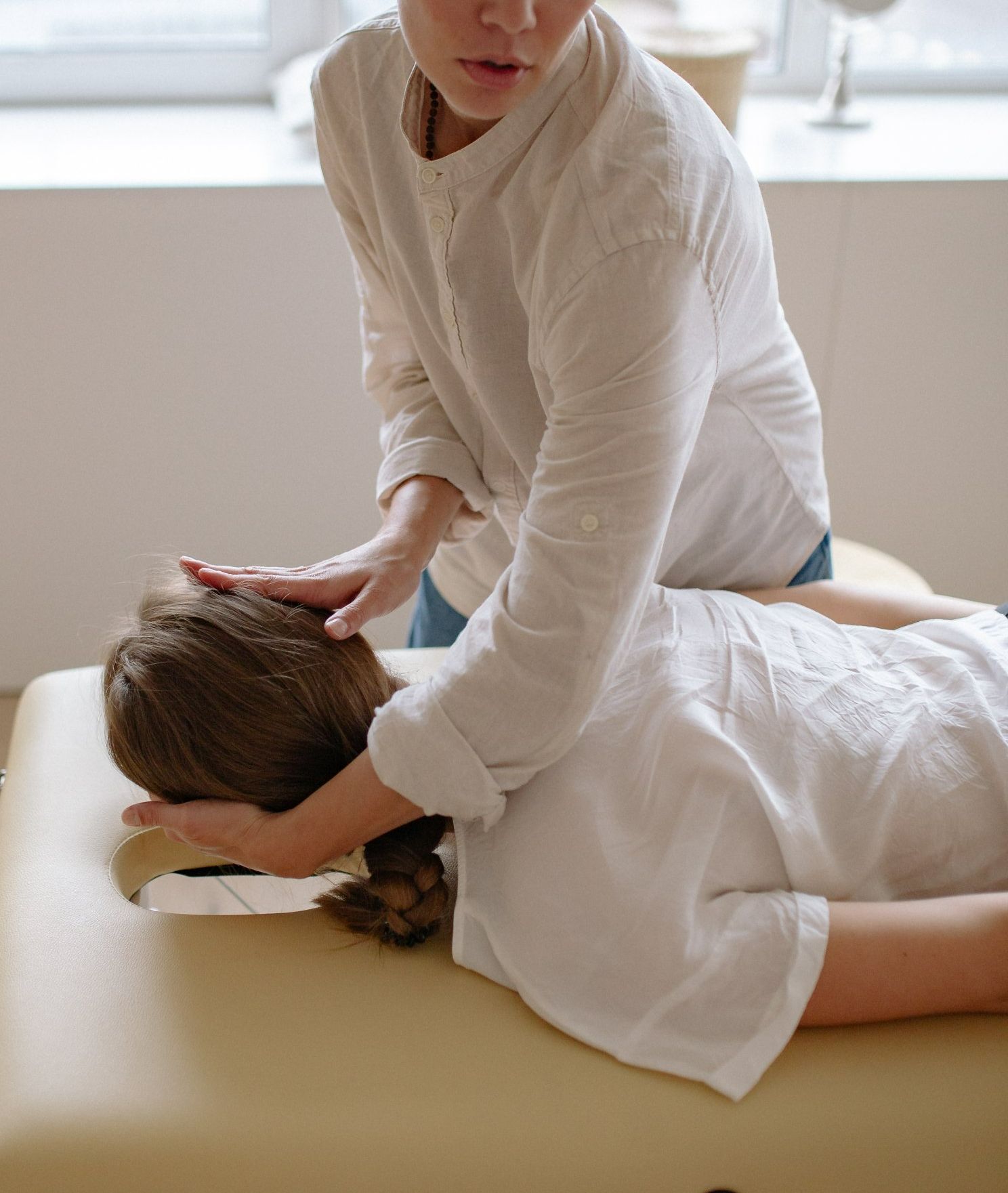- Die Massage findet auf einem speziellen Behandlungsstuhl statt, auf dem Sie bequem bekleidet bleiben.